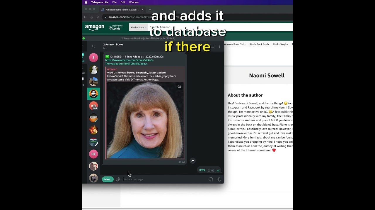 One of my recent projects was with a client who found me on Freelancer.com. They needed help scraping Amazon Books author profiles to collect contact details like emails, websites, and social profiles for future outreach. To do Amazon web scraping I created a Python Telegram bot that was used to automate the process: GitHub link.